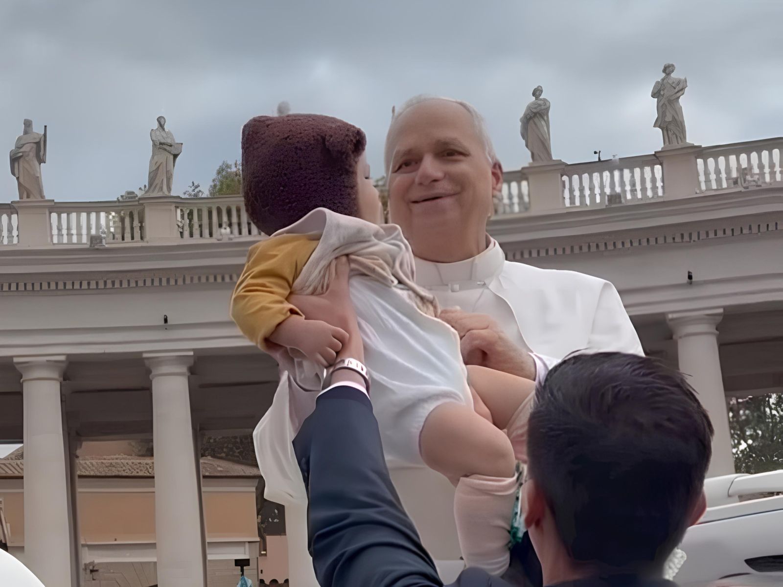 (本照片為2025.10.22台北南松山天主堂教友於梵蒂岡朝聖,參加教宗週三公開教理講授時,孩子接受教宗降福畫面,經教友授權使用)